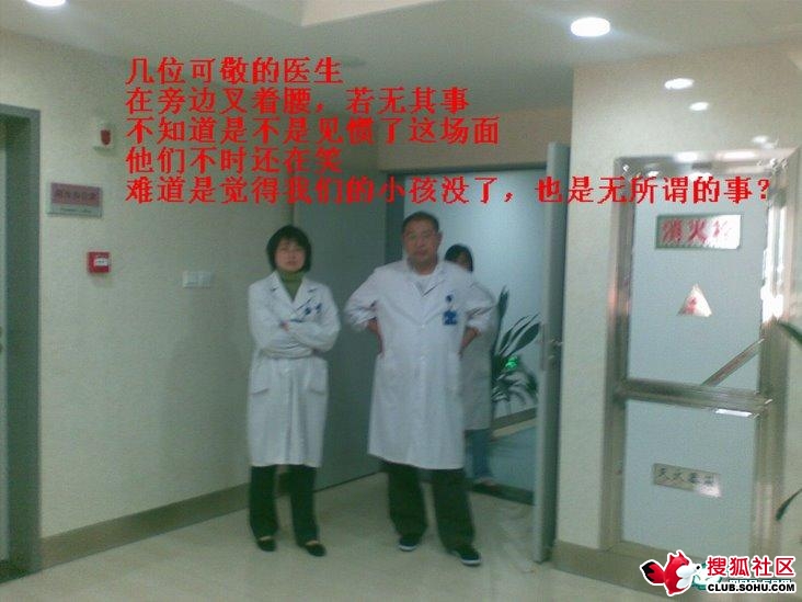 孩子就這么走了,能醫(yī)卻不醫(yī),只因?yàn)橐嬗螒?、要睡覺(jué)的醫(yī)生而耽誤了醫(yī)治時(shí)間,有誰(shuí)不會(huì)去聲討他的無(wú)德?事到如今,只能說(shuō)這位醫(yī)生不僅沒(méi)有醫(yī)德,也沒(méi)有道德,更可悲的是他連起碼的人格都沒(méi)有。當(dāng)然,喪盡天良的不光是那位推卸自己不是眼科而是五官科的值班醫(yī)生,最重要的是也包括那些南京市兒童醫(yī)院行政樓里的醫(yī)院院長(zhǎng)、醫(yī)生、保安、護(hù)衛(wèi),甚至也包括駐守在醫(yī)院門(mén)口的警務(wù)處民警們。