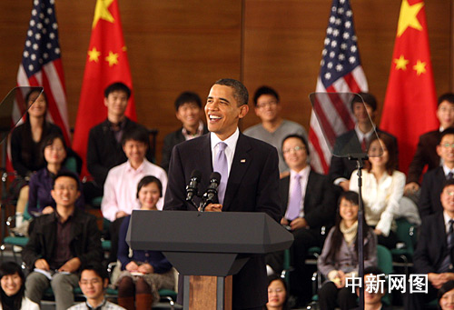 > 美國總統(tǒng)奧巴馬在上海與中國青年對話