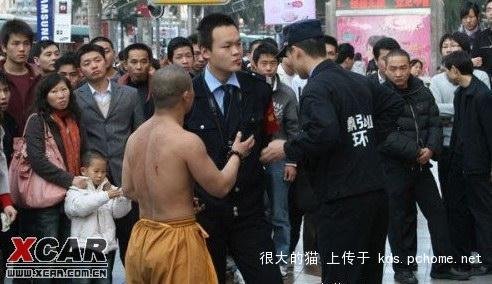 一個(gè)160左右的少林寺弟子,在深圳華強(qiáng)北賣藝,用酒瓶敲頭,林沖用的長(zhǎng)槍插自己,開(kāi)始有4個(gè)城管叫他走,他沒(méi)有理會(huì),4個(gè)城管也在旁邊看,邊打電話,隨后和尚18般武藝都使出來(lái)了,后來(lái)來(lái)了一車城管,想直接去砸和尚的東西,開(kāi)始4個(gè)城管就對(duì)他們說(shuō),他功夫厲害,30多個(gè)城管拿棒子準(zhǔn)備打架的狀態(tài),城管說(shuō)你走不走,和尚說(shuō)這里是中國(guó)人的地方我就不走,有本事抓我槍斃,要打架,我不怕你人多,隨后大叫一聲,用手直接把磚頭敲碎了,城管老大看見(jiàn)以后就說(shuō),你要講道理,出家人不要喊打打殺殺,現(xiàn)場(chǎng)的人全部笑了 !——網(wǎng)友言