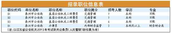 )、泰州公安局查詢職位信息和具體報(bào)考要求,報(bào)名網(wǎng)址:泰州市人事考試網(wǎng)(