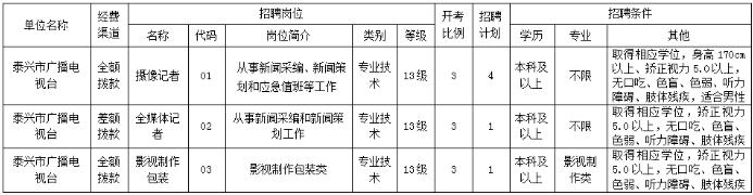 1.《泰興市廣播電視臺(tái)公開招聘工作人員崗位表》